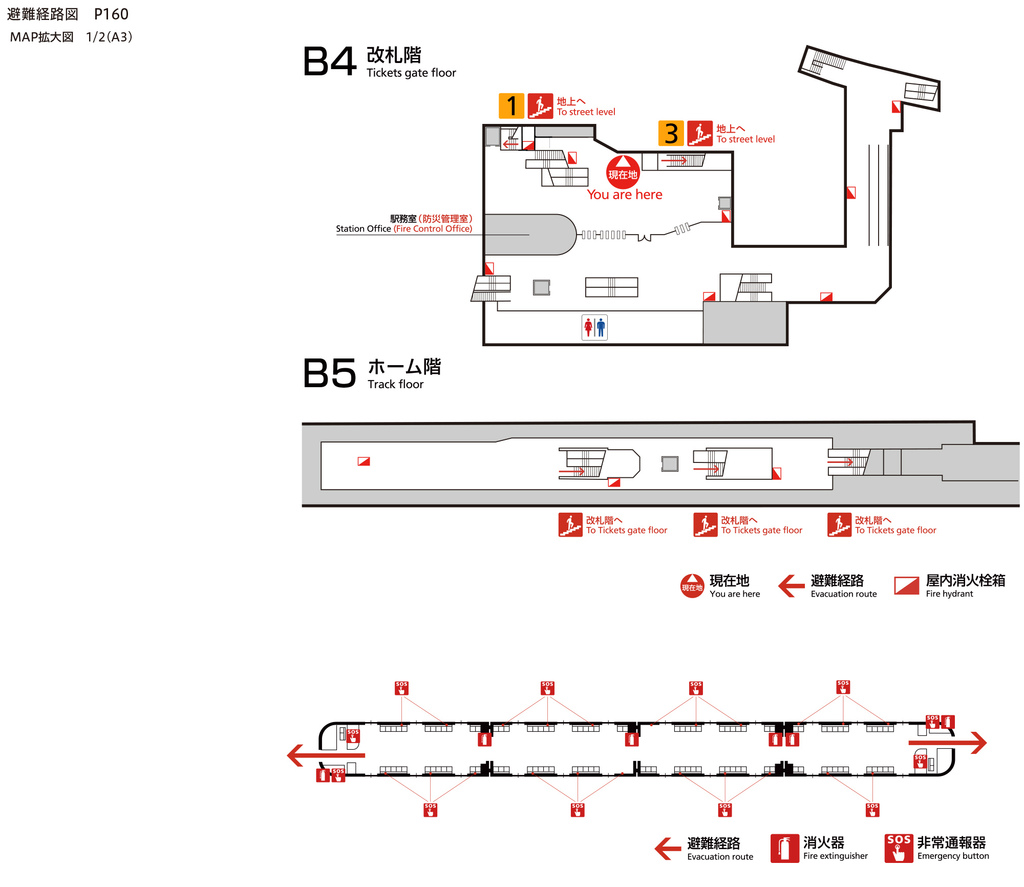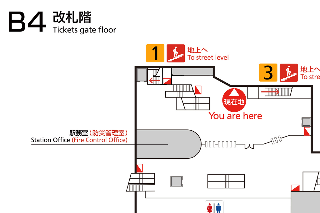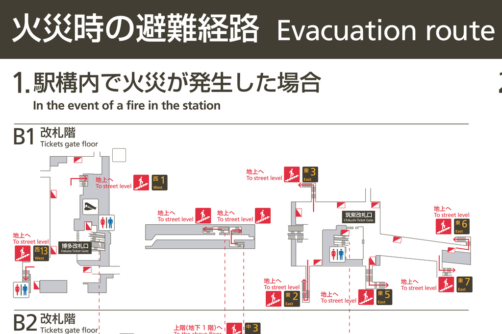 博多駅の避難経路図は、安全を「伝わりやすさ」で実現する機能美です。