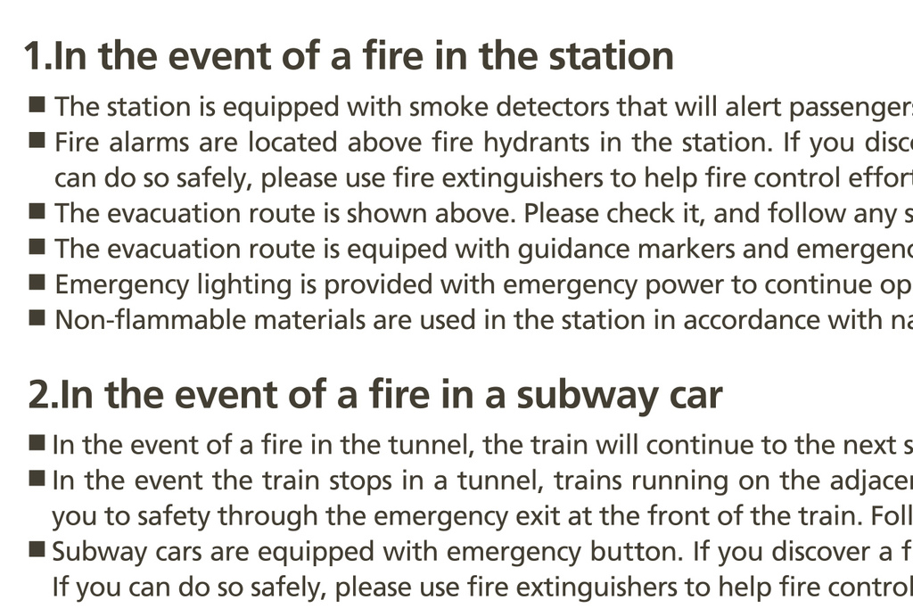 - 「車両は燃えにくい構造」 、「駅構内は不燃材料」 と明記。
