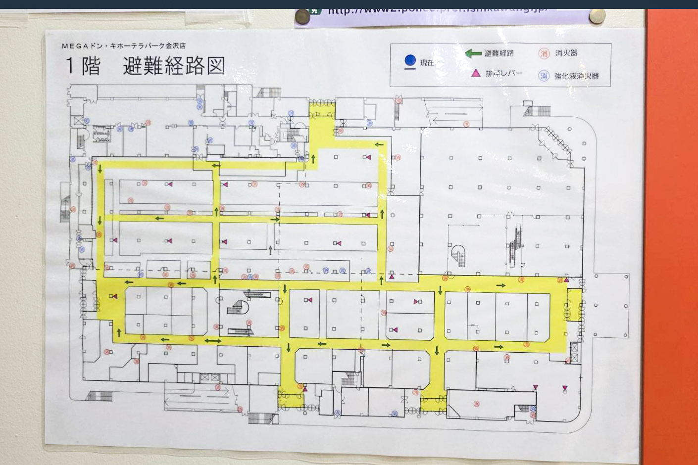 イベント イベントホール コワーキング施設 シェアオフィス シティホール ディスカウントストア レンタルオフィス 商業施設 複合施設 貸し会議室 避難図 避難経路図